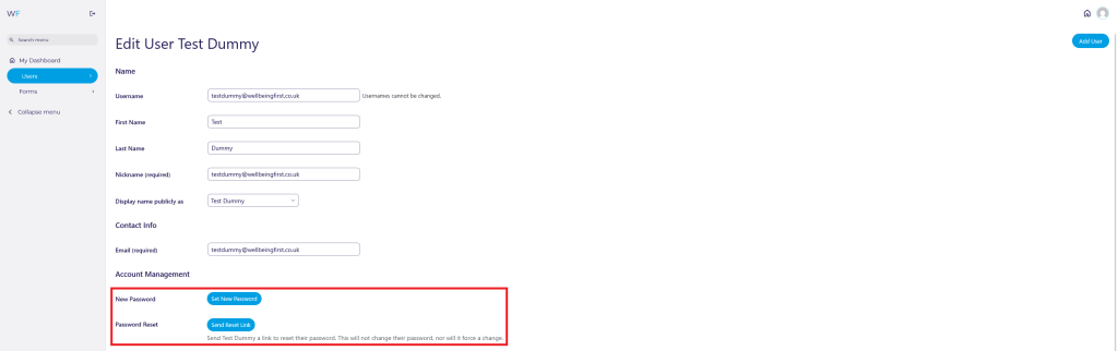 Set a new password for them or send them a link to manually reset their password. The User can also do this from their own account settings.