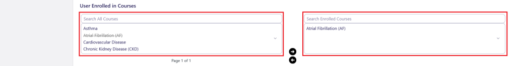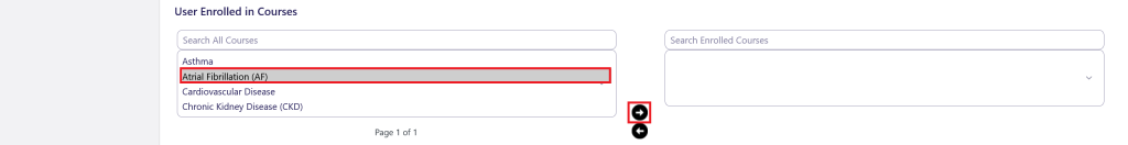 Select the Course from the left-hand column that you want to enrol the User in. You can select multiple Courses at once by pressing and holding CTRL and clicking the Courses.